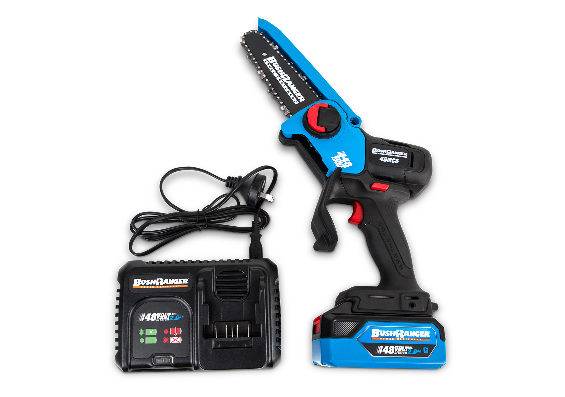 Bushranger® 48V Mini Pruning Brushless Chainsaw Kit with 2Ah Battery and Single Port Charger